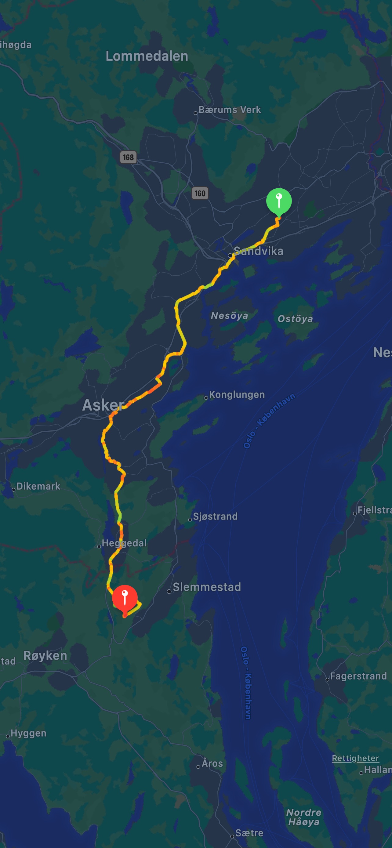 Jeg syklet 24,18 tok en annen vei hjem, ble vel 50 km til sammen. Ikke så fort så det gikk fint